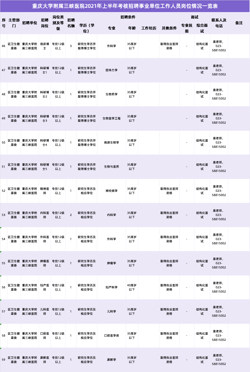重醫(yī)附三院一直致力于為患者提供高質(zhì)量的醫(yī)療服務(wù),我們對(duì)于各類(lèi)醫(yī)療專(zhuān)業(yè)人才的需求迫切,本次招聘的崗位包括: