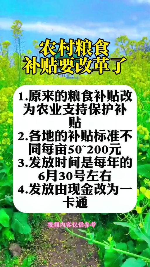 糧食是國家安全的重要基石,事關(guān)國計民生的根本,隨著我國農(nóng)業(yè)現(xiàn)代化的深入推進(jìn),為保障農(nóng)民利益、提高糧食生產(chǎn)積極性,國家不斷出臺相關(guān)政策,其中糧食直補政策是重要的一項,該政策直接補貼給糧食生產(chǎn)者,以減輕其生產(chǎn)負(fù)擔(dān),促進(jìn)糧食生產(chǎn)的穩(wěn)定增長,本文將詳細(xì)解讀這一政策在2025年的背景、重要事件、影響以及在特定領(lǐng)域或時代中的地位。